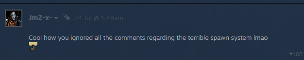 - Giusto per assicurarci di non essere dei fifoni che evitano argomenti pesanti, ecco un accenno a quell'argomento che abbiamo trascurato negli aggiornamenti precedenti. Riconosciamo che il sistema attuale potrebbe essere notevolmente migliorato. Avere un PNG con un fucile a pompa nelle immediate vicinanze non è la ricetta per divertirsi. Lo capiamo perfettamente. Tuttavia, tenendo conto di quanto detto nella prima domanda, il tempo e le risorse che possiamo dedicare a una serie di aspetti su cui è necessario lavorare sono limitati. Non fraintendetemi: non sono qui per scusarmi e trovare scuse. In ogni caso, il team ne è consapevole: i PNG e il loro comportamento saranno significativamente migliorati in uno degli aggiornamenti che arriveranno al gioco entro la fine dell'anno, e vedremo se riusciremo a introdurre qualche miglioramento nel sistema degli incontri. I giocatori possono sfruttare i file server appena rilasciati e introdurre numerose modifiche ai propri server, il che può migliorare la comparsa dei PNG. Si tratta di una soluzione provvisoria e non di una soluzione vera e propria, ma almeno potrebbe offrire un'esperienza meno frustrante finché non riusciremo a consegnare la soluzione vera e propria.