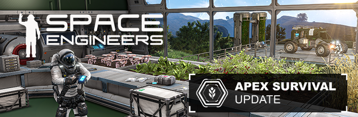 Siamo entusiasti di presentare Apex Survival , la prossima grande evoluzione di Space Engineers. Questo aggiornamento gratuito introduce nuove meccaniche di sopravvivenza nel gioco, aggiungendo cibo, farming, pericoli ambientali, morte significativa e un nuovissimo sistema di potenziamenti .